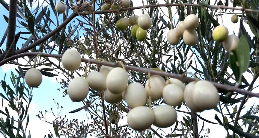 Белые оливки – теперь большая редкость: даже не всем грекам удается увидеть их нежную красоту. Созревая, они не темнеют, а светлеют, становясь цвета слоновой кости. Их называют Leucocarpa, или Leucolea (leucos – «белый», carpos – «плод»). В древние времена их считали символом чистоты, а масло использовали только в церковных таинствах или в помазании императоров. Белые оливки используют в пищу, как обычные оливки. Их собирают до полного созревания, когда цвет не отличается от привычных зелёных оливок. В кулинарии качество белого оливкового масла считается не высоким. Возможно, это стало одной из причин, почему выращивание этого древнего дерева со временем прекратилось. Однако в настоящее время, благодаря рекламе, редкое белое оливковое масло было наделено магическими свойствами и стало довольно дорогим. Давным-давно греки завезли белые оливки в Южную Италию, где теперь выращивают редкий сорт. В самой Греции найти их непросто: по неизвестным причинам эти оливы плохо размножаются. Но на