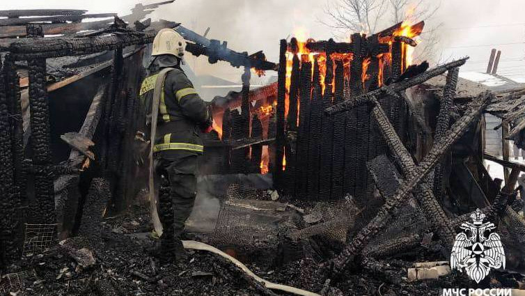 В посёлке Заволжский под Тверью сгорела хозпостройка