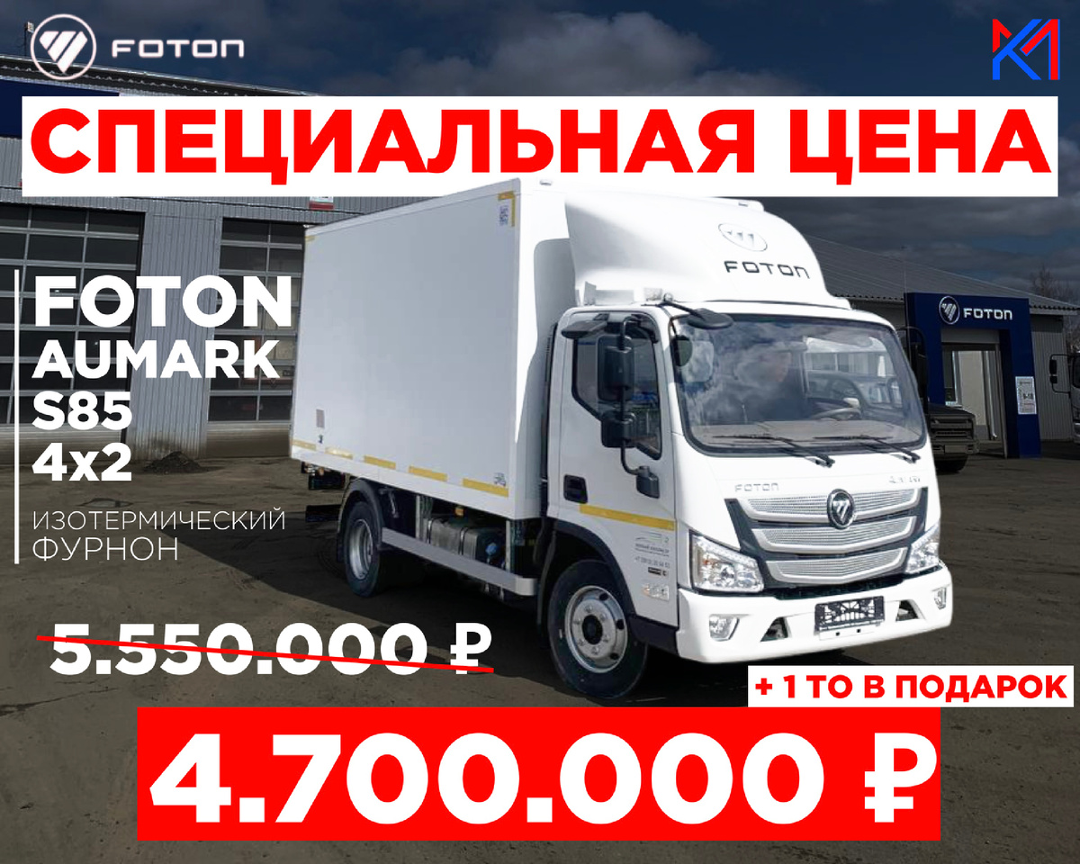 ✅ СПЕЦИАЛЬНАЯ ЦЕНА 😱 🚛 Изотермический фургон Foton S85 Aumark 4x2 — готов к работе! Технические характеристики: ➖ Двигатель: Cummins ISF3.8s5154 (Евро-5) D3.76л, 152 л.с. ➖ КПП: 6МТ ➖ Максимальная масса: 7.99 т ➖ Колёсная база: 3360 мм ➖ Объём топливного бака: 120 л ➖ Шины: 265/70R19.5 ➖ Размеры фургона (Д/Ш/В): 4400 x 2200 x 2200 мм ➖ Подвеска: рессорная ➖ Комплектация: мультимедиа, круиз-контроль, электропривод и подогрев зеркал. 💰 Цена: 4 700 000 ₽ с НДС ✅ В НАЛИЧИИ ✅ Не упустите шанс! Звоните и успейте приобрести ваш Foton S85 📍Омск, ул. Придорожная, д. 63 Б 🌐 https://fotonomsk.ru ☎️ +7 (3812) 90-90-16 📱 +7 (913) 620-10-14 (WhatsApp) 📧 sale@fotonomsk.ru ТГ: https://t.me/FotonOmsk ВК: https://vk.com/fotonomsk YouTube: https://www.youtube.com/@FotonOmsk Дзен: https://dzen.ru/foton1kmomsk Inst: foton.omsk