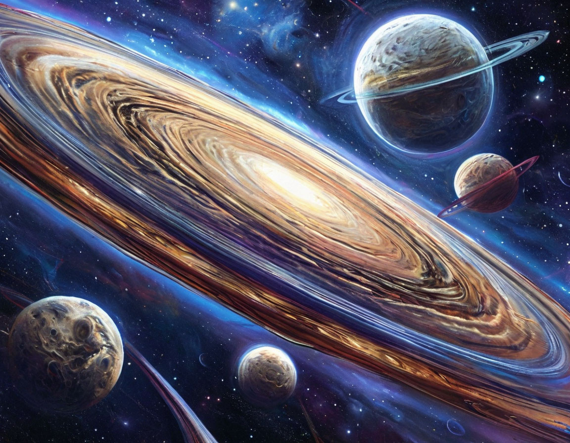 Кольца окружают многие члены нашей планетарной семьи. Сатурн, возможно, самый известный пример, окружённый восемью основными кольцами, состоящими из тысяч более мелких колечек, но три другие внешние планеты также обладают кольцами, как показали космические миссии «Вояджер». Эти кольцевые системы состоят из кусков льда и горных пород различных размеров и поддерживаются небольшими лунами-пастухами, чьи гравитационные силы притягивают обломки и корректируют их положение.