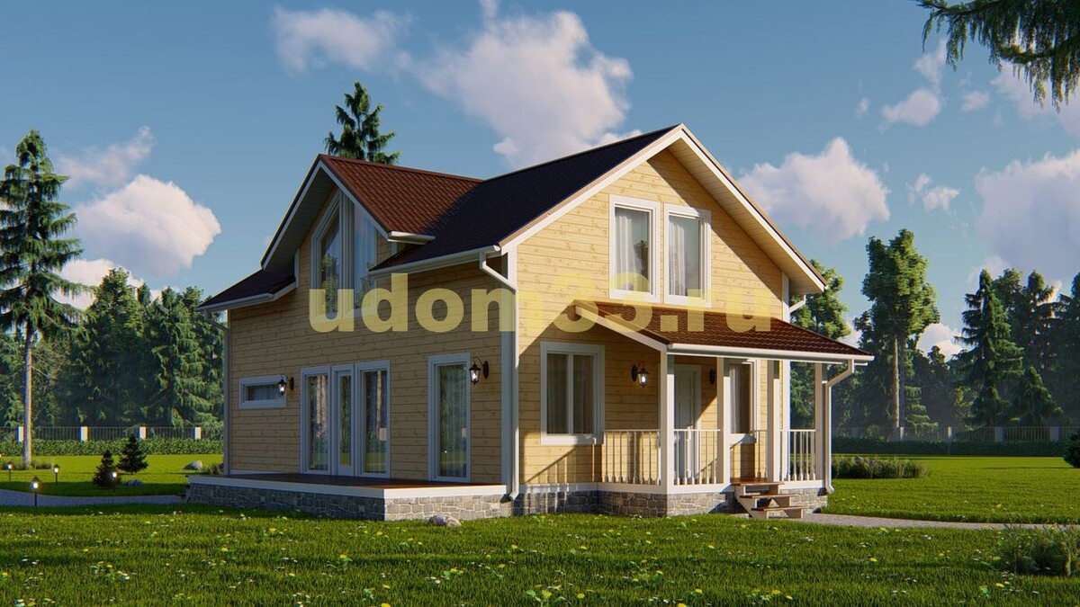 Двухэтажный дом площадью застройки 9,1x12,6 м, общей площадью 172 м2 и стоимостью от 5 428 000 рублей. От нашего подрядчика СК Уютный дом Ссылка на проект: https://lesstroy.net/user/13546/project/84837/ Первый этаж Санузел - 4.7 м2 Кухня-гостиная - 37.5 м2 Спальня - 8.9 м2 Тех. пом. - 6.6 м2 Прихожая - 5.5 м2 Холл - 2.3 м2 Крыльцо - 6.8 м2 Патио - 17.3 м2 Второй этаж Спальня - 21.3 м2 Спальня - 21.3 м2 Санузел - 5.9 м2 Холл - 10.9 м2 Балкон - 4.6 м2 Комплектация дома под ключ для круглогодичного проживания Полы и межэтажные перекрытия: Крыша: Наружная отделка дома: Окна: Утепление дома: Внутренняя отделка: Двери: Лестницы: Если проектом предусмотрена веранда или балкон, их ограждения монтируются из балясин и перил или строганной доской горизонтально. Также мы можем внести в проект изменения по желанию заказчика: изменить наружную и внутреннюю отделку на любую понравившуюся вам, изменить планировку дома и заменить свайно-винтовой фундамент на ленточный или на какой-либо другой.