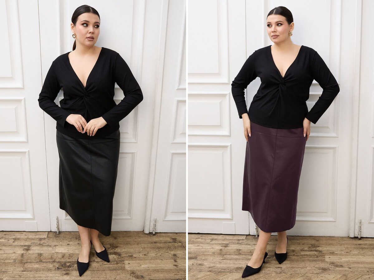 Наша одежда из экокожи при выборе верха может играть разными настроениям — в сочетании с джинсовой курткой или яркими акцентами, играйте стилями от гранжа до авангарда, с топом TVIST образ приобретает романтические ноты, а с классическим свитером или белой рубашкой вы отлично выглядите на работе и вечерних мероприятиях.