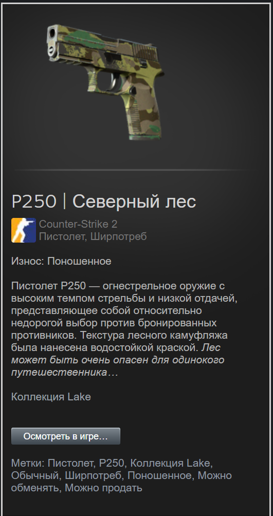 Комментарий: Игроки часто предпочитают «Немного поношенное» состояние, поскольку оно предлагает почти идеальный внешний вид по более доступной цене по сравнению с «Прямо с завода».