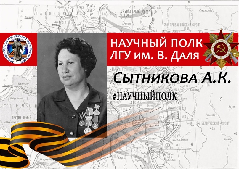 В июне 1943 года, после освобождения Ворошиловграда, Сытникова отправляется защищать Родину. После прохождения обучения на краткосрочных курсах санитарных инструкторов служила в 326-м медицинском санитарном батальоне 240-й стрелковой дивизии Второго Украинского фронта.