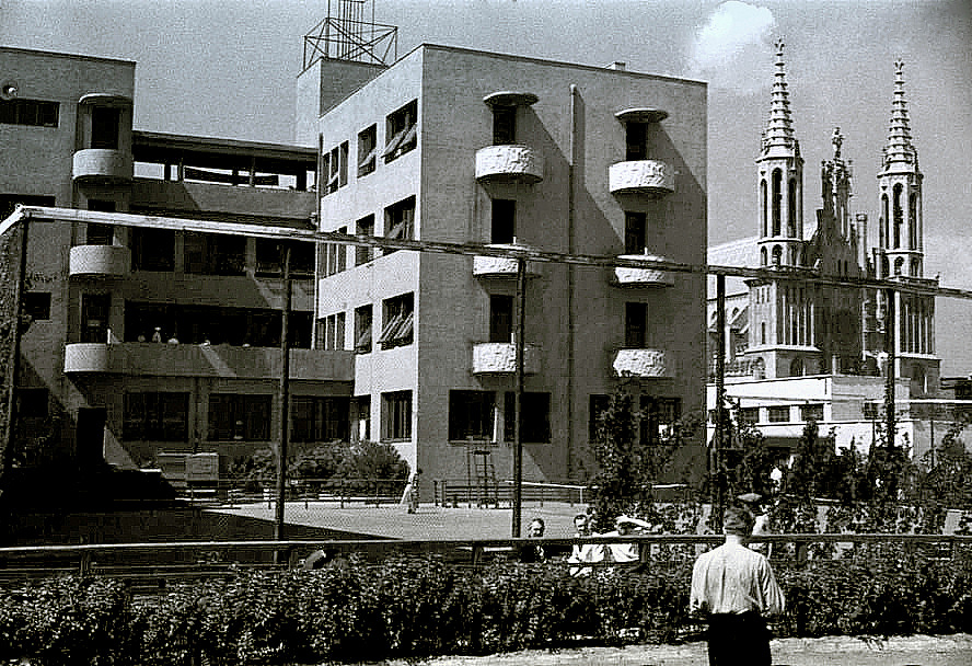 На переднем плане летняя площадка "Динамо", за ней сам спорткомплекс, а поодаль церковь. Дата съемки 1938 год.