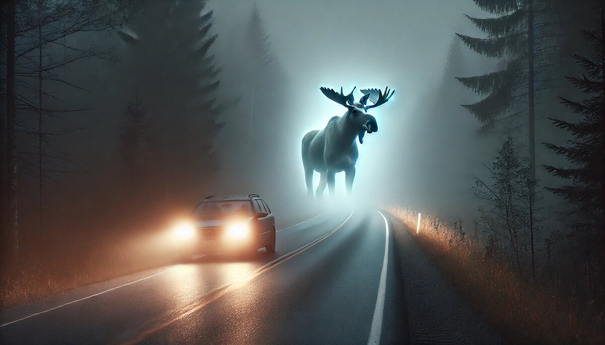 Л. Грэм *** Роберт Холмс любил ездить ночью. Темнота, пустынные дороги и ощущение, что весь мир спит, всегда действовали на него успокаивающе. Но в ту ночь что-то было не так. Он выехал с работы позднее обычного и направлялся к своему летнему домику за городом. Шоссе было пустым, свет фар разрывал густой туман, а тишина вокруг казалась почти зловещей. Дорога не была освещена, и Роберт, прищурившись, вглядывался в белёсую завесу впереди. "Туман, как из фильмов ужасов," — подумал он и усмехнулся. Радио ловило только слабый шум, и он выключил его, оставшись наедине с собственными мыслями и монотонным шумом шин. Всё произошло мгновенно. Из ниоткуда на дорогу выбежал огромный лось. Его массивное тело появилось перед машиной, как воплощение самой тьмы. Роберт даже не успел нажать на тормоз. Раздался глухой удар, машину дёрнуло, и она остановилась. Сердце Холмса колотилось так, что казалось, вот-вот вырвется из груди. Он неск
