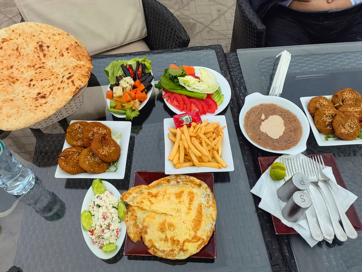 Мы только что добрались до нашей квартиры в Александрии, в которую мы заселились через брокера Сейчас почти четыре часа вечера Буду постепенно рассказывать о нашей сегодняшней поездке в Александрию. Вид из нашей спальни: Так что приглашаю всез желающих в обычное виртуальное путешествие к зимнему Средиземному морю. Утром встали рано и муж убежал на 15 минут в кальянную на утренний перекур и чашку турецкого кофе Ну, с Богом, поехали; Едем по кольцевой дороге , внизу что-то типа местных трущоб. Далее направляемся в район знаменитых пирамид, который каждый год разрастается и разрастается. Как видите, зимой в Каире небо часто вот такое, зимнее-тяжёлое, темное и низкое. Каждый месяц растут как грибы новые жилищные комплексы. Выезжаем за пределы Каира и едем по шоссе, которое так и называется "Пустынное ", ведь кругом нас окружает пустыня и новые населённые пункты и промышленные городки. Часа через полтора подъезжаем к пригородному ресторану . Написано, что это и кафе и ресторан. То