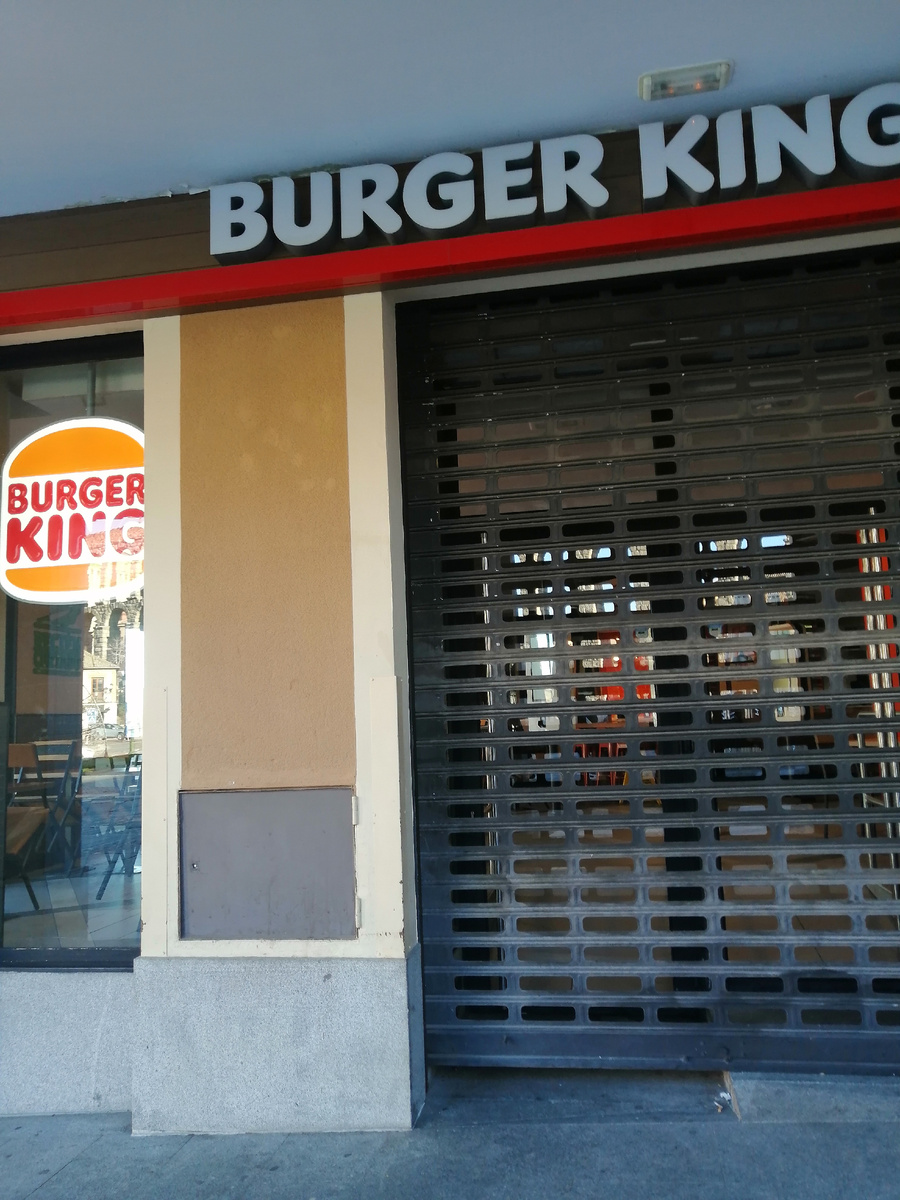 Испанцы живут неторопливо. Работа у них не на первом месте, как мне показалось. Но это так, на мой поверхностный взгляд. В Сеговии в десятом часу утра мы искали - где позавтракать? Все закрыто. Я увидела за акведуком знакомую надпись: Бургер Кинг. Ну они-то почти круглосуточно работают! Пойдем там поедим? Что-то из курочки там есть? Пришли. Закрыто!! Фото сделано в 10.45. В зале моют полы, готовятся к открытию. Видимо часов в одиннадцать откроют. Булочная открывается в 10.30. С 12.30 обед до 17.00. Дальше, правда, долго работают: до 21.00. В Сеговии утром позавтракать мы смогли только около одиннадцати часов. Нашли единственное кафе, где делают нормальный завтрак в это время. Практически везде предлагают бокадильо - испанский сэндвич. Да не хочу я эту булку с мясом и сыром с утра (и в обед тоже не хочу)! Завтрак нам приготовили настоящий: яйцо-бенедикт и лосоль. Очень плотный завтрак. До вечера есть не хотелось. В кафе народ был все время - точно единственное, где кроме булок с