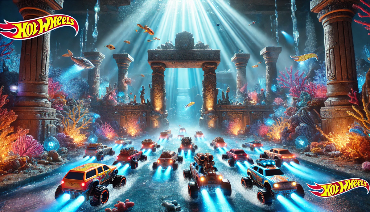 В одном из самых красивых и загадочных уголков мира Hot Wheels находилось озеро с легендами о затонувшем городе. Называли его Гоночной Атлантидой. Гонщики всегда мечтали отыскать это место, ведь говорили, что там спрятан древний артефакт — Кристалл Скорости, который может увеличить мощность любой машины. Команда состояла из четырех друзей, у каждого из которых была своя уникальная история и способности. Макс был лидером, прирождённым стратегом, всегда просчитывающим каждый поворот трассы. Его машина, покрытая ярко-красным хромом, была оборудована новейшими ускорителями. Лия, опытная механик, могла починить любую машину даже под водой. Её автомобиль выделялся матово-черным покрытием и усиленными амортизаторами, идеально подходящими для сложных трасс. Джейк, смельчак и экспериментатор, славился своими трюками и рисковыми манёврами. Его машина была оборудована специальными турбинами, способными мгновенно увеличивать скорость. София — картограф и исследовательница. Она изучала легенды и на