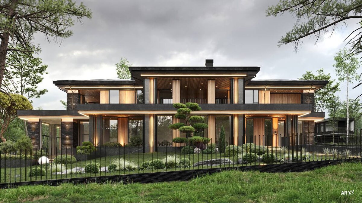 Участок с рельефом стал основой для уникальной планировки дома. Дом гармонично вписывается в окружающий ландшафт. Террасы создают эффект присутствия природы и единения с ней. Цокольный этаж служит техническим сердцем жилища. Здесь располагаются все необходимые функциональные помещения, персонал. На первом этаже находятся кабинет и мастерская, SPA зона. Второй этаж отведен для отдыха. Здесь расположена мастер-спальня для хозяина с просторным гардеробом, а также уютная мастер-спальня для хозяйки. Две детские спальни с отдельными кабинетами, отлично подходящие для отдыха, игр и учебы. Каждый элемент этого дома продуман с любовью и вниманием к деталям.