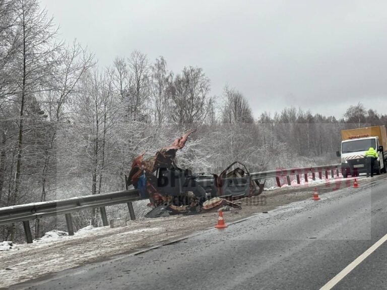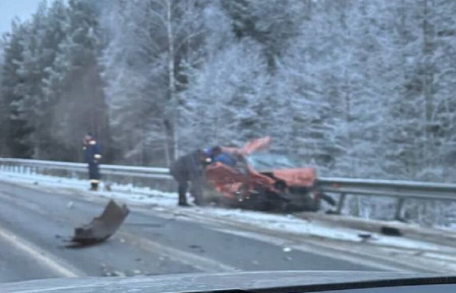 Публикуем фото ДТП с легковушкой и фурой “Охотно” на обледенелой трассе у Навли