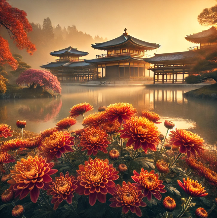 Японцы особенно любят хризантемы за то, что они расцветают в период осенней прохлады, когда большинство растений уже завершили свой жизненный цикл. Это делает хризантему настоящим «королём осенних садов». Существуют сотни сортов и гибридов: от скромных мелких цветков, напоминающих солнышки, до роскошных махровых шаров, переливающихся оттенками от жемчужного белого до насыщенного пурпурного.