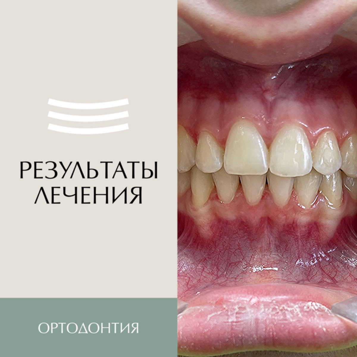 На фото результаты ортодонтческого лечения, которое длилось год и два месяца, на брекетах Damon Q.