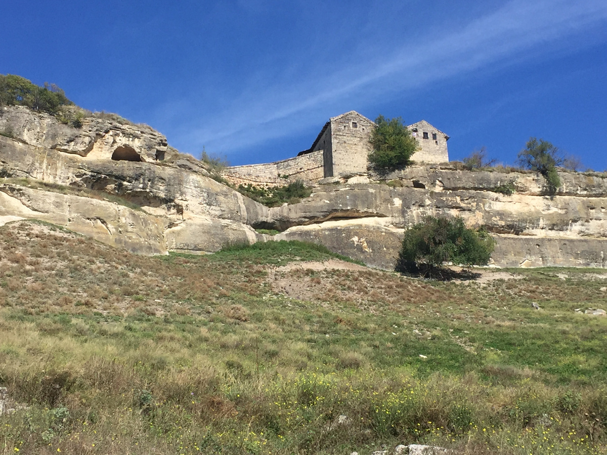Тропа ведущая к пещерному городу обрамлена перилами сделанными из стволов деревьев . Уже на подходе открывается вид на оборонительные стены Чуфут - кале, его постройки и темные дыры пещер , расположенные в несколько ярусов . Здесь стоит остановиться , чтобы просто насладиться этим необычайным зрелищем , хранящем в себе столько секретов, загадок и истории.