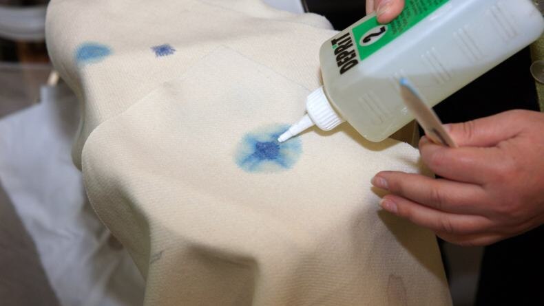 Совет: Подложите под пятно бумажное полотенце, чтобы чернила впитывались.