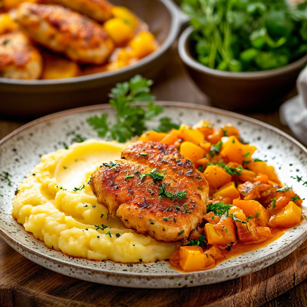 Добро пожаловать на The Culinary Canvas — ваш источник вдохновения для кулинарных экспериментов! 🎨 Сегодня мы приготовим классический обед, который порадует всю семью. Куриные котлеты с картофельным пюре и овощным рагу — это блюдо, которое сочетает в себе нежность, сытность и яркие вкусы. Оно идеально подойдёт для тех, кто любит домашнюю кухню и хочет порадовать близких чем-то вкусным и полезным. 🍗🥔