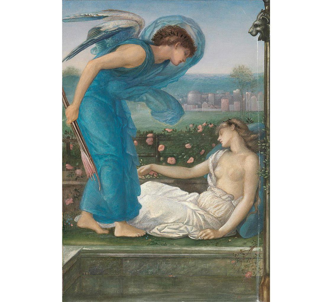 Разработал 70 сюжетов из истории Купидона и Психеи. Эта лаконичная запись под 1865 годом в ретроспективном списке работ английского художника Эдварда Бёрн-Джонса (1833-1898) представляет одну из тем, которая останется его увлечением на протяжении тридцати лет, уступая по значимости только легенде о короле Артуре. Первоначальное вдохновение к художнику пришло от Уильяма Морриса, который в том году только что закончил «The Story of Cupid and Psyche / Историю Купидона и Психеи», первую в длинном цикле повествовательных поэм, в конечном счете опубликованных под названием «Земной рай». Идея Морриса состояла в том, чтобы выпустить роскошное фолиантное издание «Купидона и Психеи, обильно иллюстрированное гравюрами на дереве, и именно для этого Бёрн-Джонс стал создавать различные варианты дизайна, начав с большого количества эскизов, которые сейчас хранятся в альбомах в Бирмингеме и в библиотеке Пирпонта Моргана в Нью-Йорке. Фактически было вырезано около сорока пяти ксилографий, но пробные л