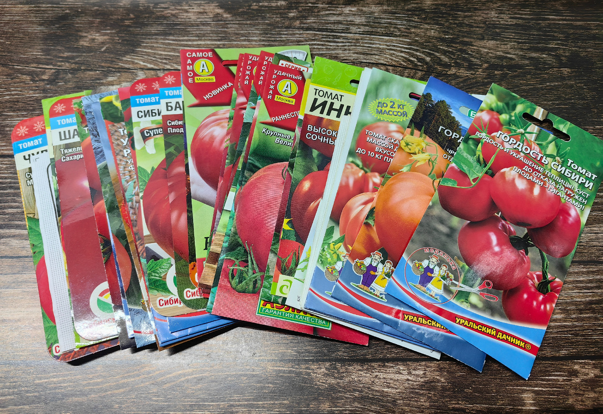 Меньше всего у меня Семян Алтая, Золотой Сотки Алтая, Дом Семян, Евросемена и какой-то пакетик СадОк из Ашана или Леруа уже не вспомню. По вышедшему в 2020г сроку годности ясно что покупка старая. Вот кстати этот сорт Райское Наслаждение я прямо таки искала и хотела))) И так обрадовалась, когда увидела его в белом пакетике почти бесплатно!))) Году в 2019 я посмотрела видеообзор на этот сорт от обычного огородника. Он с таким восторгом рассказывал как они всей семьей и всей родней его обожают, что теперь сажают только его! Загорелась попробовать))) Ну вырастила)) А он просто обычный томат, обычного вполне томатного вкуса. Семян своих не оставляла. Цапнула тогда аж две пачки)))) Вот оставила одну на память))))) Томат Инна прошлогодняя покупка, тоже по отзывам. Высадила ее в ОГ в 2024г, но я крайне неудачливый томатовыращиватель в ОГ))) Если надо выбросить - то вот тогда можно высадить в ОГ в моем случае. Она погибла вместе со всеми другими. И ее и сорт Бравый Генерал непременно планирую к высадке.