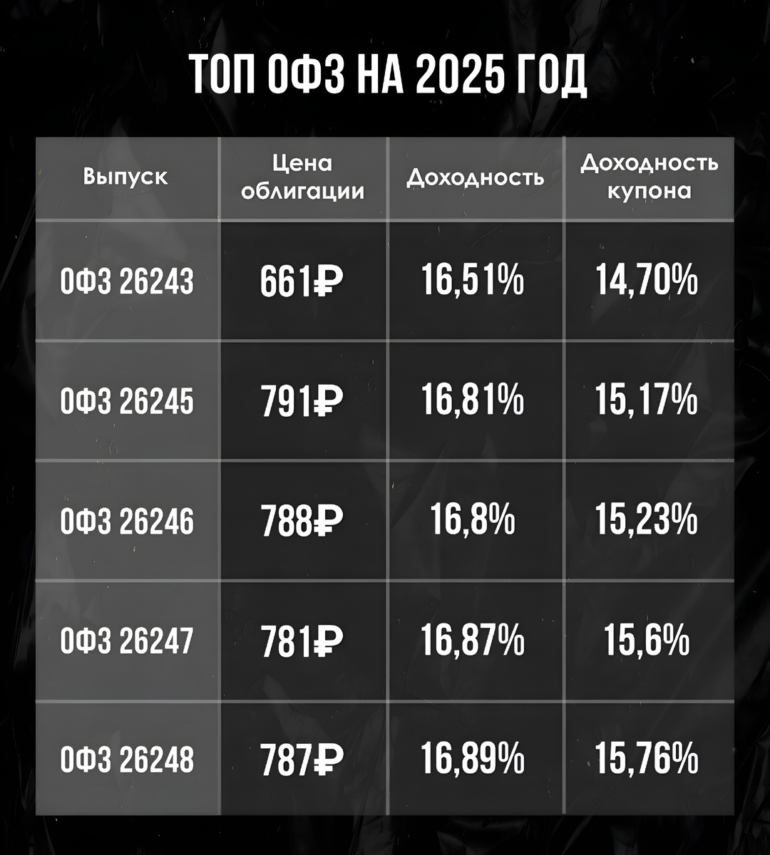 🕊️ ТОП–5 длинных ОФЗ на 2025 год. Для тех, кто верит в чудо экономики и в Центробанк лично!