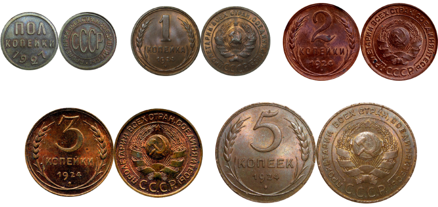 К 1917 году Россия погрузилась в беспрецедентные смятения. Жизнь в стране начала нормализоваться лишь в 1920-х годах с объявлением НЭПа. Гиперинфляция первых советских бумажных денег — так называемых "совзнаков" — заставила большевиков ввести твердые деньги, аналогичные поздней имперской денежной системе. В экономике снова появилась знакомая валюта: медные монеты "фидья", которые на короткий период использовались в 1924 году. Однако уже через два года было решено заменить дорогое металл на дешевый сплав бронзы. Со временем чеканка медных монет была полностью прекращена. Ожидания нового экономического развития не могли основываться на обычных монетах или золотых резервах советских бумажных денег. Тем не менее, это был момент в истории, когда в сочетании с приватизацией экономики напряжение в товарных денежных отношениях ощущалось, уходя от советского доминирования.