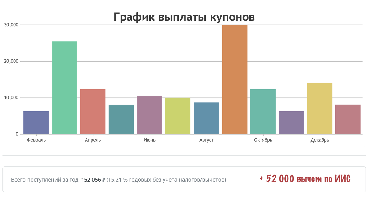 Около 200к ₽ на сегодняшний день В интересные времена живем! Без походов на работу, без кредитов и ипотеки. Вам не придется сдавать однушку сомнительным личностям и общаться с участковым. Просто есть альтернатива – собрать сбалансированный портфель облигаций. Просто чтобы конкретизировать, о каких таких инвестициях в облигации мы тут все рассуждаем – пример портфеля из нашего конструктора. Вводные: 1 000 000 ₽, 20 разных бумаг (для диверсификации), срок погашения до 5 лет, рейтинг не ниже АА. Каждый месяц на счет будут поступать живые деньги, а с ИИС еще и вычет можно будет получить. Конечно это не замена вкладам и недвижимости. Такой подход не исключает акций, собственного бизнеса и долларов под матрасом. Но однозначно имеет место быть – облигации достаточно надежны, чтобы часть средств держать в них. Важно, что после снижения ключевой ставки (а мы надеемся), процент по вкладам снизится, а купон по облигациям не изменится. Буквально праздник, который всегда с тобой! Список почти случа