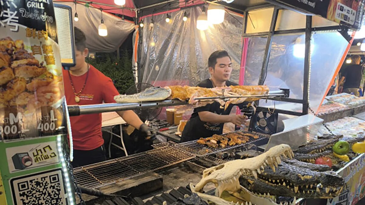 Мы с супом Том Ям приветствуем вас с берега Сиамского залива! Одной вашей знакомой недавно стукнул полтинник, и она в качестве подарка получила путешествие в теплую страну посреди зимы. Докладываю: по моим ощущениям жизнь после пятидесяти есть! Ну, по крайней мере, у меня она началась неплохо. Теперь о вышеупомянутом тайском супчике: гадость непередаваемая. Причем, отведанный мною годами ранее в украинских кафешках, этот Том Ям был до того вкусен, что хотелось попросить добавки, а тут, на своей родине, ну редкостная бяка... Как будто суп сперва прокис, потом его перекипятили и, чтоб перебить запах, плеснули в кастрюлю одеколона. Ставлю жирный дизлайк и удивляюсь окружавшим меня азиатам, уплетавшим это хрючево за обе щеки. Вторая попытка отведать тайскую кухню тоже не увенчалась успехом. Это были некие жареные спринг-роллы с разными начинками. Ну, такое... Как говорит мой сын, не выкупаю прикола. Там ещё рядом крокодильчика на вертеле жарили. Надпись под прилавком:"Попробуй, прежде чем