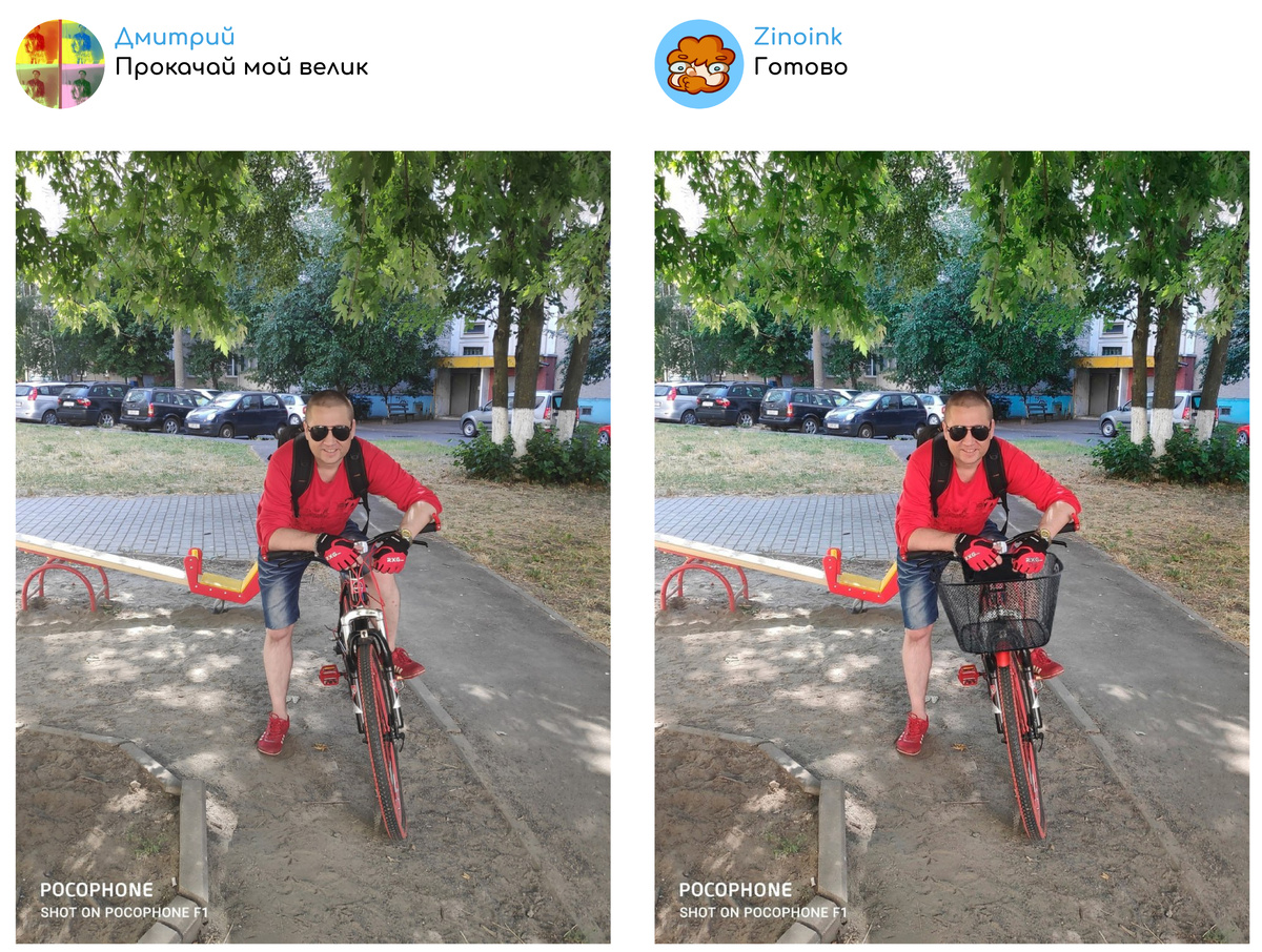 Вот и наступила долгожданная пятница, скоро закончится рабочая неделя! Уверен, многие уже на винишной прямой). И это не опечатка, а констатация классного кутежного настроения. А что для вас идеальный вечер пятницы – дело субъективное. Кто-то будет танцевать до упада, а кто-то смотреть сериалы под пледиком). Главное – зарядиться перед этим хорошим настроением. И поможет в этом – моя еженедельная рубрика «Фотошопы». Напоминаю, что ты тоже можешь стать ее участником. Присылай фото и пиши, что хочешь на нем исправить. А я непременно сделаю это. С большим юмором). А пока давай полюбуемся на героев этой недели. Все мы в своей жизни стремимся к совершенству. Во всем – в себе, в доме, семье и даже – в небольших мелочах. Вот и герой следующей переписки решил усовершенствовать свой велик. Как человек за тридцать посоветовал ему классный вариант. Дааа уж, современную молодежь не понять! Вот мы в детстве хотели быть похожими на человека-паука, или в конце концов – на Сашу Белого. Что ж, буду модн
