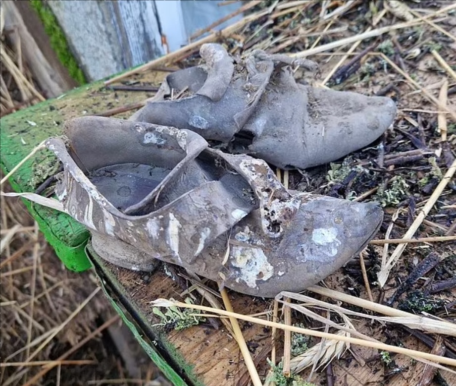 Довольно часто при реконструкции старых зданий делают неожиданные находки и даже обнаруживают клады. Монеты, посуда, бутылки, газеты и тому подобным - обычное дело. Но кровельщики из британского Оксфордшира недавно были реально удивлены. Местная компания Thame Thatch специализируется на ремонте кровель исторических зданий и в том числе кроет крыши сеном, камышом и не только. На этот раз занимались крышей здания начала 19 века, на которой планировалось сделать мансардные окна. Когда сняли многочисленные более поздние наслоения, сделали неожиданную находку – старинную обувь. При этом работники припомнили старинное суеверие: иногда под крышей замуровывали обувь для отпугивания злых духов. Как ботинки могли помочь в этом вопросе, история умалчивает, но современные кровельщики тоже оказались людьми суеверными. Крис Феллоуз, владелец Thame Thatch рассказал о находке так: «Мы были в шоке. Мы находили кое-что на крышах, но ничего подобного — это считается хорошей находкой. Мы взяли выходной на
