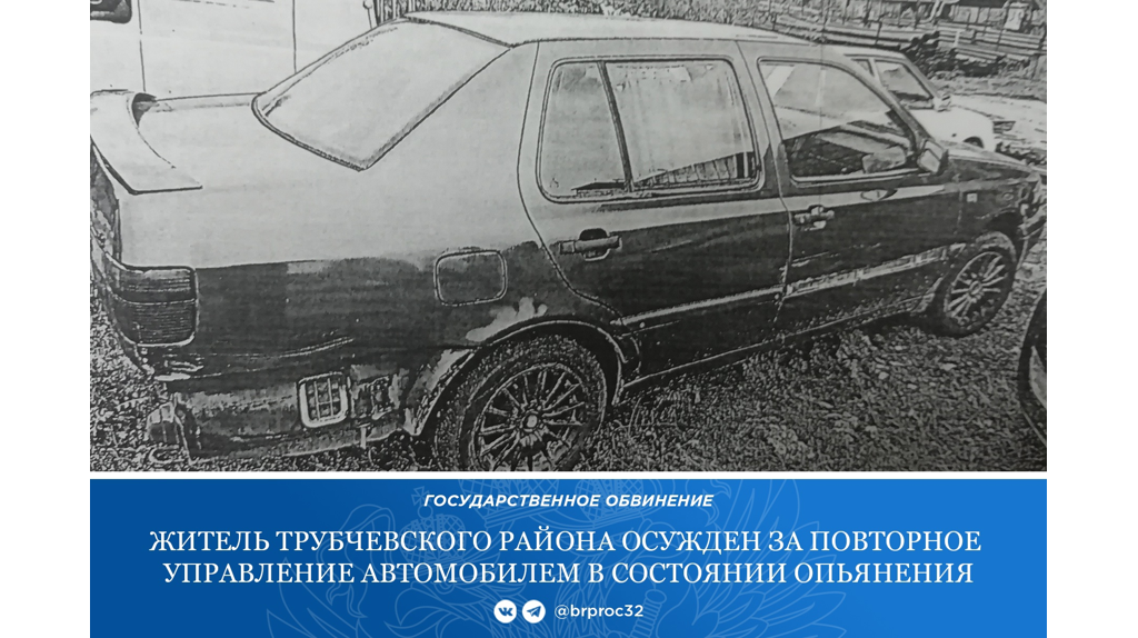 В Трубчевске суд вынес приговор по уголовному делу в отношении 38-летнего местного жителя. Его признали виновным в управление автомобилем в состоянии опьянения, рассказали в пресс-службе региональной прокуратуры.