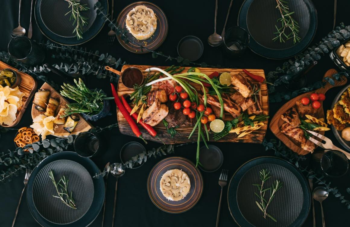 Модная сервировка к 23 Февраля в чёрном цвете: красиво и сурово