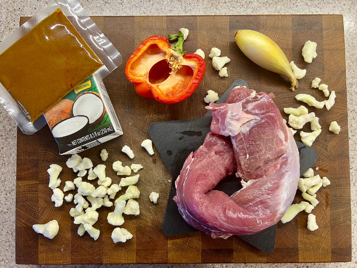 Итак, вырезка (хрю). Да, многие не употребляют свинину, я знаю. Жирно и тд. Но вот я уважаю именно свиную вырезку. Это легкая и нежирная часть хрюшки. Если еще и не пересушить, то вообще прелесть. Готовить ее можно по-разному, это чистый холст. Я ее и жарю и пеку, разве что не варю (тут она врядли достойно выступит). Как-то и веллингтон с ней делала, очень даже хорошо получается. Просто не биф, а порк (ха). Кстати, вы знаете его вегетарианский вариант? Ага, со свеклой делают. Но я не пробовала, так что судить не буду. Короче, сегодня вариант с индийским акцентом. Хотя и с международными составляющими. Свинина, прям скажем, не классика для государства Южной Азии. Но, почему бы и нет, по-этому и да. Все не говядина и хорошо. Священных коров сегодня не тронем! А карри подсыпем. Это чудо-приправа сегодня с нами не в виде порошка, а готовой пасты. Приступим. Тут все просто и быстро (ага). Для начала разрежьте вашу милейшую вырезку на медальоны, слегка присолите и отправьте обжариваться н