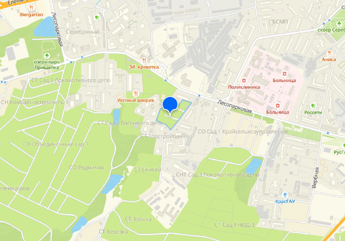 Жители улицы Лесопарковой в Красноярске просят построить им сквер В соцсетях создали петицию, посвящённую этому вопросу, её подписали уже более 200 человек. — Мы, жильцы домов по адресу: ЖК на Курчатова, Лесопарковой, обращаемся к администрации города с просьбой о создании общественного сквера на освобождаемой в данный момент территории от дачных сооружений вблизи жилых домов нашего ЖК. В нашем районе существует острая нехватка зеленых зон для прогулок и отдыха. Жители домов на Лесопарковой. Сейчас на участке СНТ сносят дачи, и жители просят разбить там сквер. Авторы петиции выразили мнение, что новый парк поможет создать комфортные условия для прогулок и отдыха с детьми. фото: 2gis.ru/krasnoyarsk