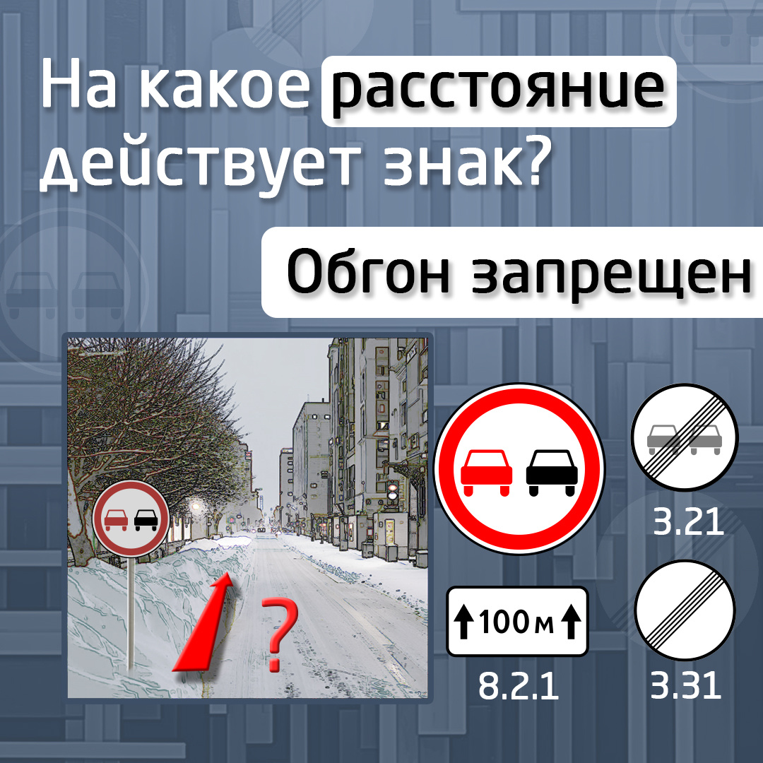 На какое расстояние действует знак 3.20 «Обгон запрещен»?