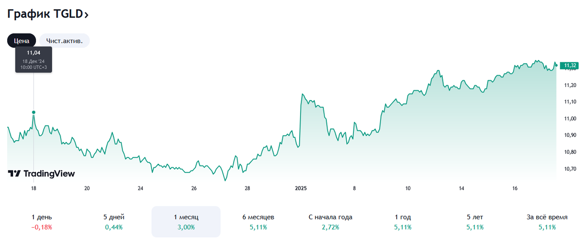 - 8 лотов фонда Золото (TGLD) на 87.12 рублей;