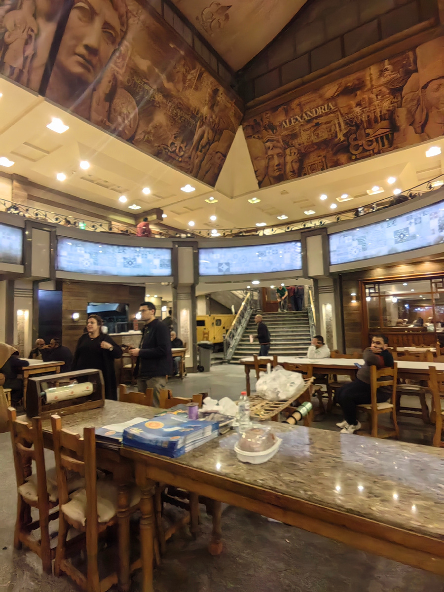 Теперь про ресторан и о том, что мы заказывали . Это один из лучших ресторанов Александрии. Кухня на пять с плюсом, большой выбор не только мясного, но и рыбного. Но помните я уже писала, что в таких ресторанах нет алкоголя и с собой тоже принести нельзя. Пусть это будет рассказ в фото, потому что тут важен визуальный ряд В прошлом году мы сидели на первом этаже, а в этот раз на втором были свободные столики Хорошо, что в это раз не было брата с сестрой, а то мы бы ещё минут 30 ждали пока они решат за какой присесть стол. Вот наш стол, сюда и упали. И муж начал выпучивать глаза прям как сестра и закатывать их , его было не остановить! Он заставлял Хамоззу и Гзадк заказывать еды и побольше. Майонез из азбитыз белков с чесноком-тоумейя Я пару недель назад рассказывала как его делают. Хоммос : Сыр "миш", он острый и вонючий , очень на любителя: Муж и Гхада заказали по тарелочке отварной свеклы, хотя наш винегрет и борщ для мужа это очень тяжёлая еда. Тарелочка овощного салата : Сал