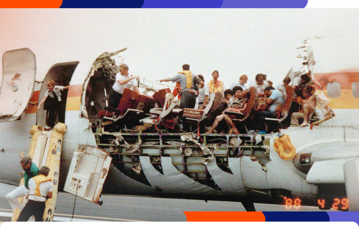 Об этой аварии над Кахулуи снят фильм. Пассажиры Boeing 737-297 авиакомпании Aloha Airlines были в шоке, когда у самолета после получасового полета отвалился фюзеляж в носовой части. Одну не пристегнутую стюардессу выбросило потоком воздуха. Пилоты решили немедленно садиться. При заходе на посадку произошла еще одна «странность». Лампочка-индикатор выпуска переднего шасси не загорелась, пилоты подумали, что заклинило шасси и пошли на второй круг. Во время разворота отказал левый двигатель. На самом деле проблем с шасси не было, просто лампочка оказалась неисправной.