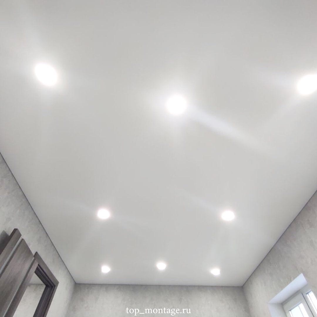 Уменьшение высоты помещения при установке натяжного потолка с точечными светильниками