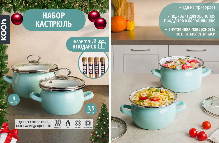 Подходит для всех типов плит, а так же для духовки. Устойчивы к ударам и коррозии. Можно мыть в посудомоечной машине.