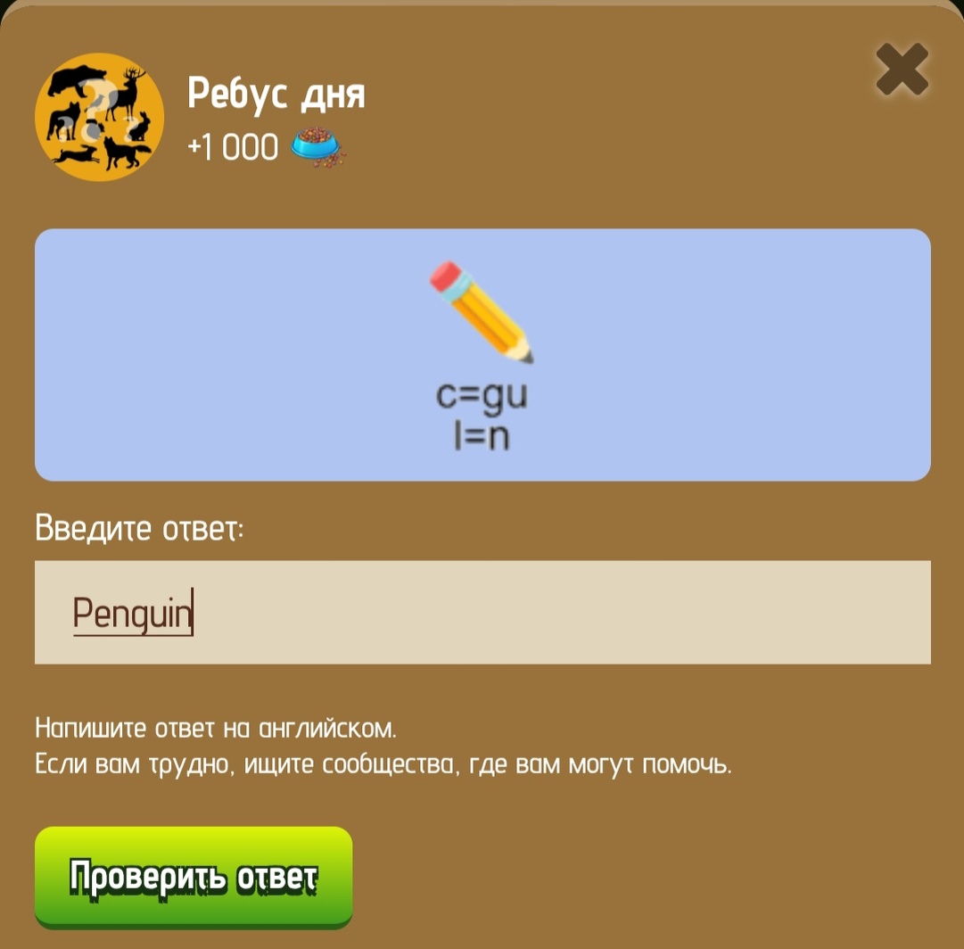 Ребус дня в ZOO от 17 января 2025 Ответ: Penguin Расписания подарочных коробок выкладываем регулярно в нашем телеграм канале - ТУТ Ответы на загадки и ребусы нужно вводить в разделе "Задания". Zoo - это игра, где нужно развивать свой зоопарк и собирать игровые монеты. Улучшаем животных, вступаем в альянс и выполняем задания.