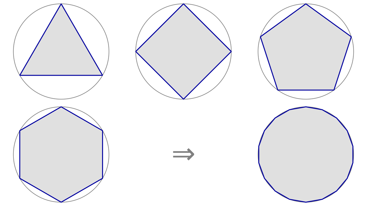 Получается, если на произвольной окружности отметить точки, равноудаленные друг от друга, а затем соединить их отрезками, мы получим правильный многоугольник. Выберем три точки — будет равносторонний треугольник. Четыре точки — квадрат, пять точек — пентагон, шесть — гексагон и так далее, сколько душа пожелает. Правда, следует помнить, что при увеличении количества точек правильный многоугольник будет постепенно сливаться с исходной окружностью.