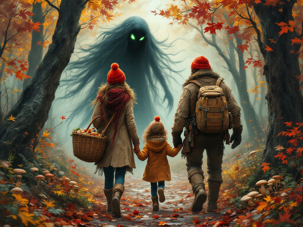 На следующее утро семья, вооружившись корзинами, отправилась за грибами. Девочка прыгала от радости, размахивая маленьким ножом, её отец Михаил шёл за ней с улыбкой. Ирина, поглядывая на небо, заметила, что туман, словно молочный кокон, медленно стелется меж деревьев.