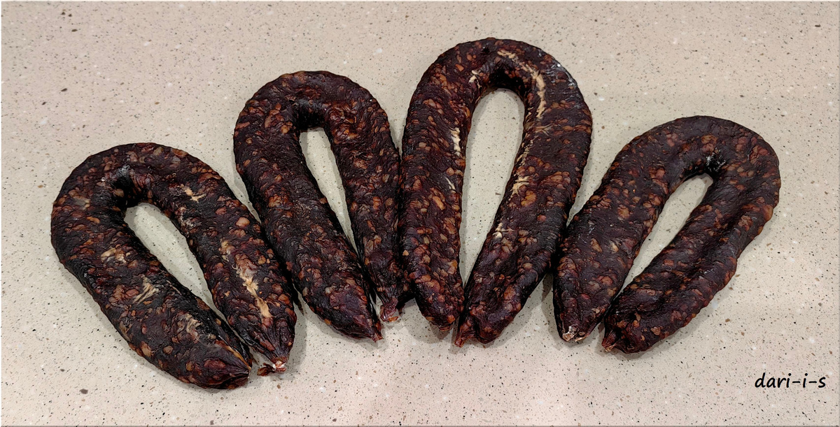 Получается очень вкусно и аутентично. Рецепт не столько сложный, сколько долгий, но стоит своего времени. Рецептов суджука очень много. Его готовят из разного мяса, добавляя разный жир и специи, на свой вкус. По приведённому ниже рецепту я готовлю уже три года и очень довольна результатом. Предлагаю попробовать и Вам. Нам потребуются (специи и чрева доступны в магазинах сети ЕмКолбаски): Общий вес сырья с салом составил 2,5 кг. Исходим из этого веса, считая пропорции для специй. Мясо зачищаем от жил и излишков жира, пропускаем через решетку (на мясорубке) 8 мм. Курдюк мелко нарезаем ножом на кусочки по 2-3 мм. Добавляем вино, соль, специи, сахар, старты (если добавляете их). Хорошо и долго вымешиваем фарш. Я делаю это миксером (спиральные венчики для теста) 10-15 мин, пока не образуется что-то вроде белых "нитей". Накрываем крышкой и отправляем на 24 часа в холодильник на созревание. Достаём из холодильника, размешиваем фарш и максимально плотно набиваем им чрева. Формируем колбаски