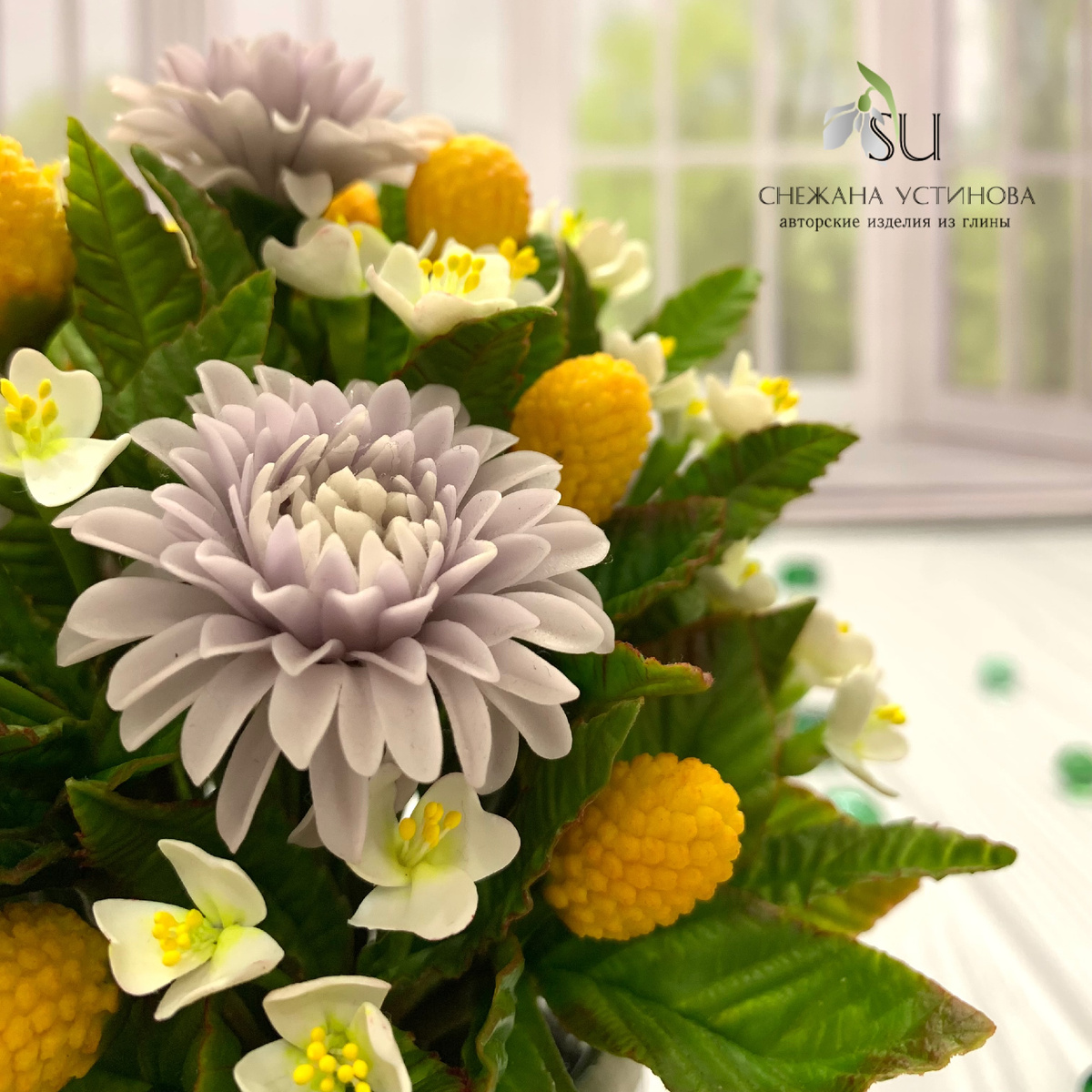 Сначала я сделала белые полевые цветы, которые, как оказывается, вовсе не так просты, как кажутся. У каждого лепесточка свой характер! Хотя, признаюсь честно, гораздо больше времени ушло на наши многолепестковые хризантемы. Вы бы знали, сколько терпения и чашек чая мне потребовалось, чтобы сотворить эти изящные сиреневые цветы! В одном такого красавца больше пятидесяти лепестков - и каждый требует внимания и трепетности. Да, без веселья тут не обойтись - однажды я пыталась подсчитать все лепестки и сбилась на двадцать восьмом… или был это сорок третий?