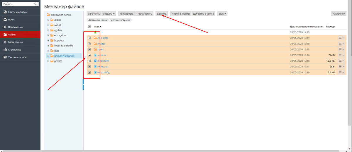 Если по каким-то причинам автоматическая установка WordPress Вам не подходит или Вы просто хотите узнать, как работает эта CMS, то можно установить WordPress вручную. Ниже описаны шаги, которые необходимо выполнить для ручной установки. 1. Скачать установочные файлы WordPress Скачиваем архив с файлами CMS WordPress с официального сайта (настоятельно не рекомендуем скачивать со сторонних ресурсов) https://ru.wordpress.org/download/. 2. Загрузить файлы WordPress в директорию сайта на хостинг через FTP-клиент или панель управления хостингом Plesk Важно! Домен должен быть добавлен в панели управления хостингом. Если ваш домен не добавлен, воспользуйтесь инструкцией Как создать домен в Plesk. Важно! При установке убедитесь, что в целевой директории сайта отсутствуют файлы уже развернутого сайта или другие файлы, имеющие для Вас ценность. Если они присутствуют, сделайте их копию, очистите корневую директорию и только после этого начинайте процедуру установки. Распакуйте скачанный архив на св