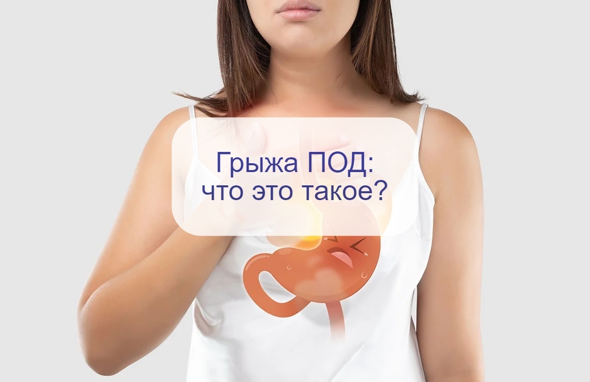 Грыжей пищеводного отверстия диафрагмы (грыжа ПОД) или диафрагмальной, параэзофагеальной грыжей называют патологическое провисание или смещение диафрагмы в грудную полость вместе с анатомическими структурами, расположенными под диафрагмой. В грыжевом мешке при этом могут находиться – нижняя часть пищевода, верхняя часть желудка или весь желудок, петли кишки.