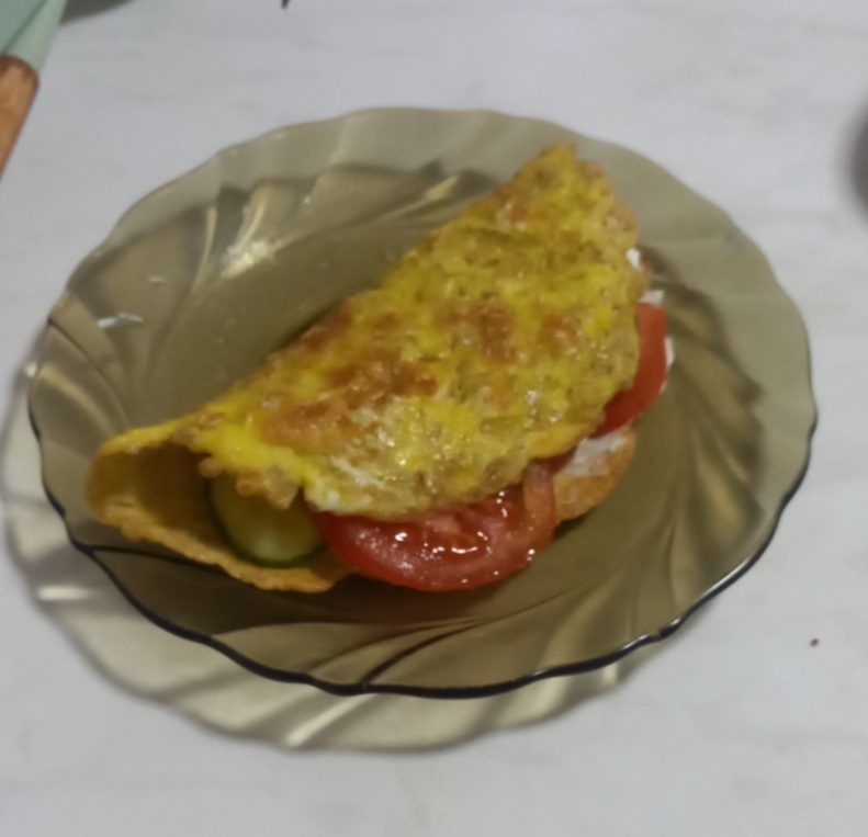 Вчера выкладывала статью о завтраках, а сегодня утром решила приготовить себе полезненькое. Овсяноблин - отличный вариант быстрого и полезного завтрака или перекуса. Он получается нежным, сытным и отлично сочетается со свежими овощами и творожным сыром. Ингредиенты: 2 яйца; 1 столовая ложка овсяных хлопьев(можно использовать быстрого приготовления); Щепотка соли (у меня адыгейская); 2 столовые ложки творожного сыра; ½ свежего огурца; ½ помидора; 1 ст.л растительного масла для жарки. Приготовление: 1. В миске хорошо смешайте яйца, ложку овсянки и щепотку соли. В некоторых рецептах добавляют немного воды или молока, я не добавляла. 2. Дайте настояться овсянке минут 10-15. 3. Разогрейте небольшое количество растительного масла на антипригарной сковороде. Я использовала сковороду для блинов. 4. Вылейте тесто на сковороду, равномерно распределяя его по поверхности. 5. Жарьте блин под закрытой крышкой по 3-5 минут с каждой стороны на маленьком огне. 6. Переложите готовый блин на тарелку.