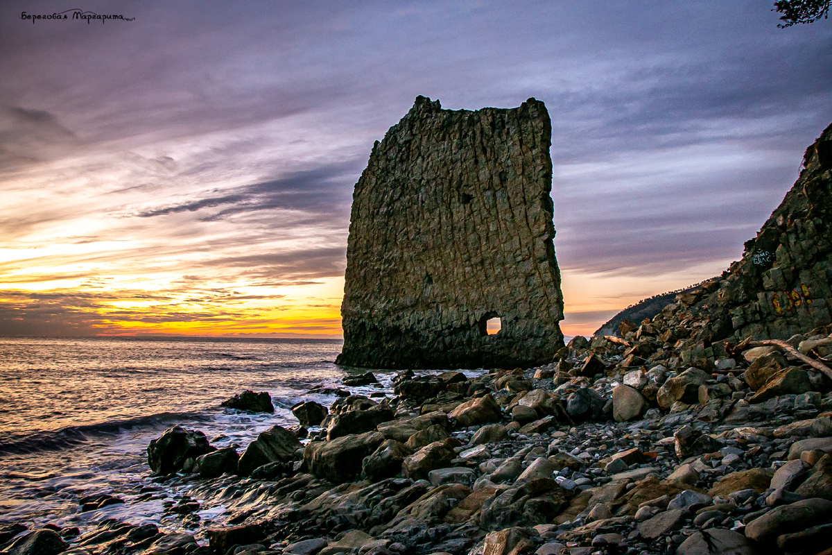 Необычная скала под названием парус в Краснодарском крае. Она впечатляем сови размером и формой + внутри маленькое окошко :) Мы приехали к самому вечеру и попали на ослепительный закат.