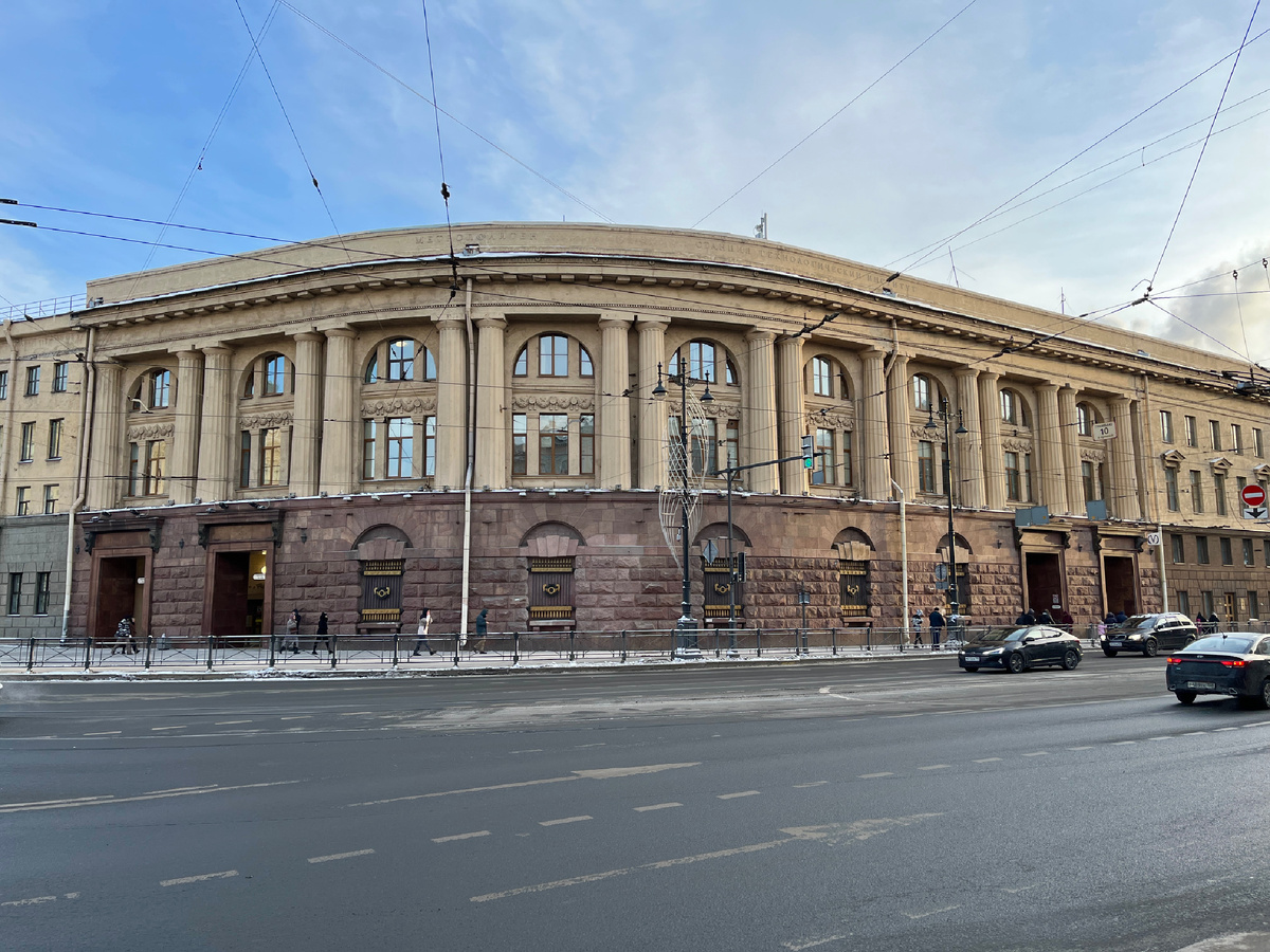 49. Технологический институт (1955) встроен в монументальную "сталинку" управления метрополитена на углу Загородного и Московского проспектов: