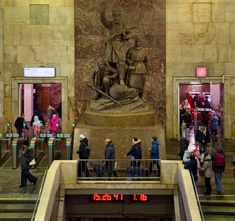 На платформе установлены статуи Зои Космодемьянской и Матвея Кузьмина – самые известные партизаны, имена которых стали символами мужества и самоотверженности.