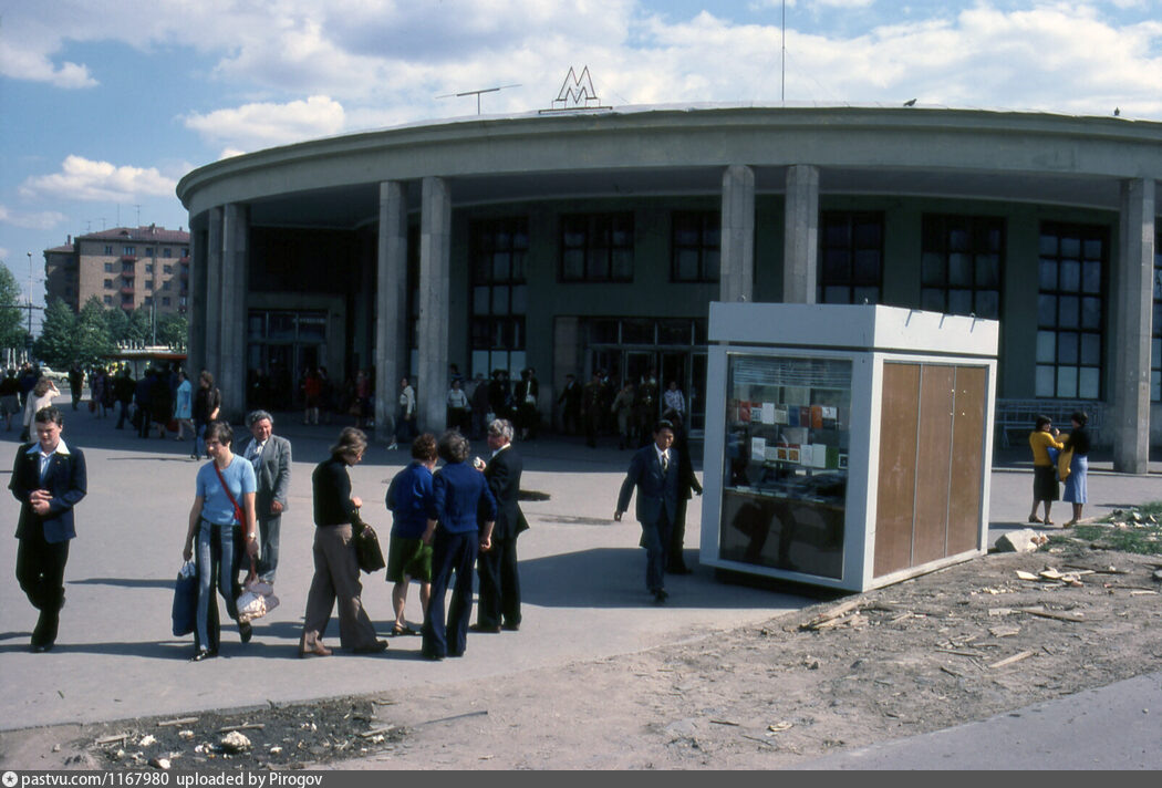 Давайте совершим очередное путешествие сквозь время, прогуляемся по волнам нашей памяти, вспомним, какой была жизнь тогда и посмотрим, что изменилось за прошедшие годы. Поехали! ... Мы у вестибюля станции метро "Университет". За ним проспект Вернадского, а слева за кадром Ломоносовский проспект. Здесь тогда было всё типично, пустая площадь и один киоск "Союзпечать", возможно, где-то рядом ещё стоял "Мороженое". Фото 1979 года, Вильям Близзард Сейчас вид с этой точки заметно другой. Фрагмент вестибюля можно увидеть слева, а на переднем плане теперь стоит большой торговый комплекс А это вид от вестибюля метро "Университет". Справа Ломоносовский проспект и за кадром здание МГУ, а в центре кадра неосвоенная территория. Фото 1979 года, Киселёв Всю территорию у метро в наши дни здесь застроили жилыми домами А это вид от проспекта Вернадского на Ломоносовский. Трамвай заходит на круг, чтобы поехать в обратном направлении. Фото 1972 года Трамваи здесь разворачиваются и сейчас. Видно, несмотря
